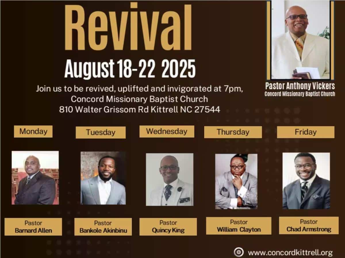 August 19 @7pm – Concord Missionary Baptist Church,
