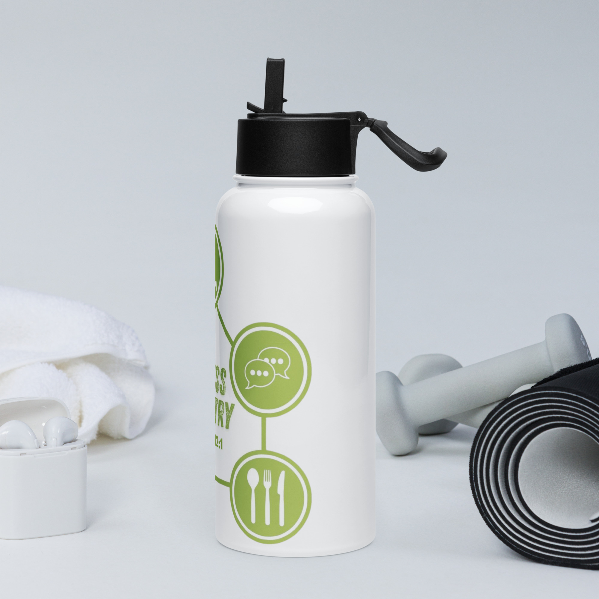Stay hydrated all day with this 32 oz (950 ml) stainless steel water bottle with a straw lid. It’s ideal for workouts or busy days, with a wide-mouth foldable straw for spill-free sipping and a rotating handle for easy carrying.